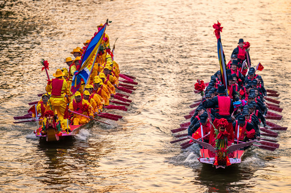 5月13日,瑞安市迎来了龙舟上水仪式。清晨的河畔人头攒动,彩旗飘扬,龙舟队员们身着统一队服,肩扛龙舟缓步走向水边,精心装饰的龙舟在欢呼声中逐一"上水"。仪式结束后,各支龙舟队展开了适应性训练。鼓手擂响节奏鲜明的鼓点,木桨翻飞间激起层层浪花,沿岸挤满了举着手机记录的市民。
