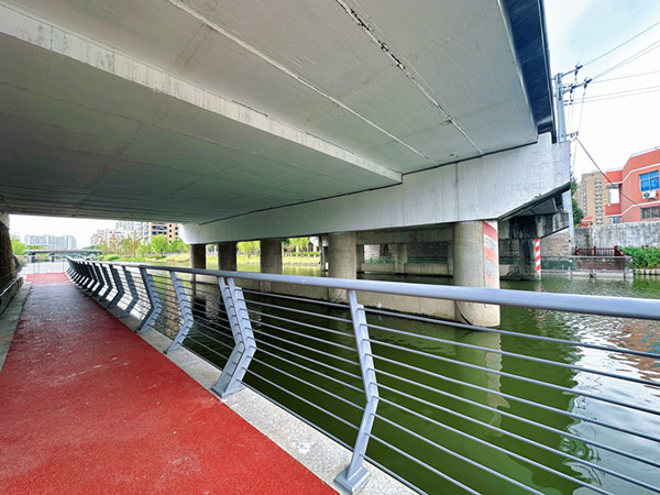 在空间利用与功能拓展上,该中心精准盘活闲置资源,贯通九里间桥、九里上兴桥、九里上旺桥、雅儒大桥桥下空间967米,打破以往桥下区域“封闭闲置”的困境,让原本的“灰色地带”成为连接两岸的便捷通道;充分利用雅儒河两岸闲置地,铺设彩色游步道3.48万平方米,同步补植乡土绿植1.59万平方米,搭配生态驳岸修复1705米、挡土墙加固1000米,构建起层次丰富的滨水生态廊道。